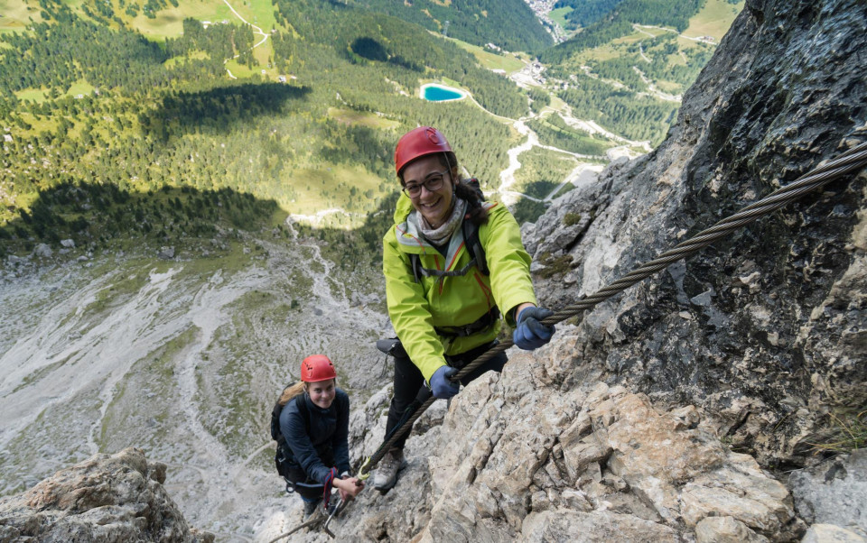 Von der Bergstation Gosaukammbahn geht es in rund 30 Minuten zum Einstieg des Klettersteiges. Der Klettersteig ist mit C/D bewertet und inkludiert die spektakuläre Himmelsleiter (die aber auch umgangen werden kann). Gesamtzeit: ca.5,5h Max. 6 Personen