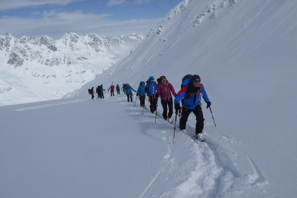Vom Talschluss Kolm-Saigurn (Erreichbar je nach Schneelage per Shuttle oder vom Sommerparkplatz) steigen wir über eine bewaldete Stufe vorbei an der Neubauhütte weiter Richtung Goldbergkees. Nach dem Gletscher wartet noch der Gipfelhang, bis wir unser Ziel erreichen. Vollständige Skitourenausrüstung inklusive LVS und Harscheisen erforderlich. Aufstieg: 1500Hm Dauer: ca.7h